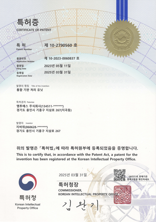 특허증 10-2790560-0000 페이지 정보 작성자 최고관리자 댓글 0건 조회 43회 작성일 25-09-25 09:10 목록 본문 특허증 10-2790560-0000 이전글특허증 10-2747821-0000 25.09.25 다음글특허증 10-2810091-0000 25.09.25 댓글 0 댓글목록 등록된 댓글이 없습니다.